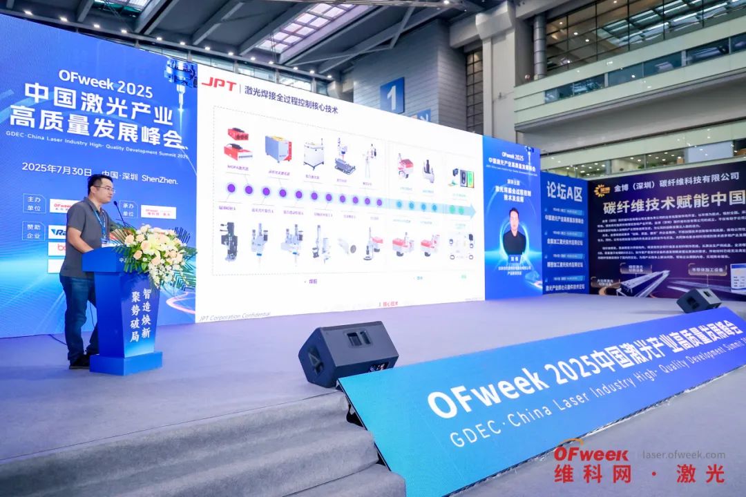 展會同期舉辦的“中國激光產業高質量發展峰會”上,杰普特研發經理劉偉發表了題為《激光焊接全過程控制技術及應用》的主題演講。劉偉經理系統闡釋了杰普特在焊前-焊中-焊后全流程控制技術上的工業化突破。該技術通過光束整形、動態熔深調控及AI質檢等硬核創新,已在新能源、3C電子領域實現規?;涞?,不僅顯著提升產品品質,更以智能化推動產業向高效、綠色方向發展。